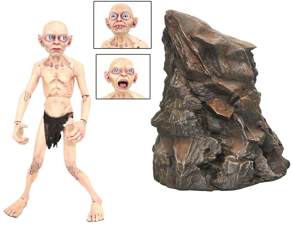 Baserat på hans framträdande i Lord of the Rings-trilogin kommer Gollum förpackad med flera utbytbara huvuden, en klippformation att klättra på, plus andra tillbehör. Gollum har 16 ledpunkter, detaljerad skulptur och färg. Designad av Eamon O'Donoghue, skulpterad av Gentle Giant Studios!
