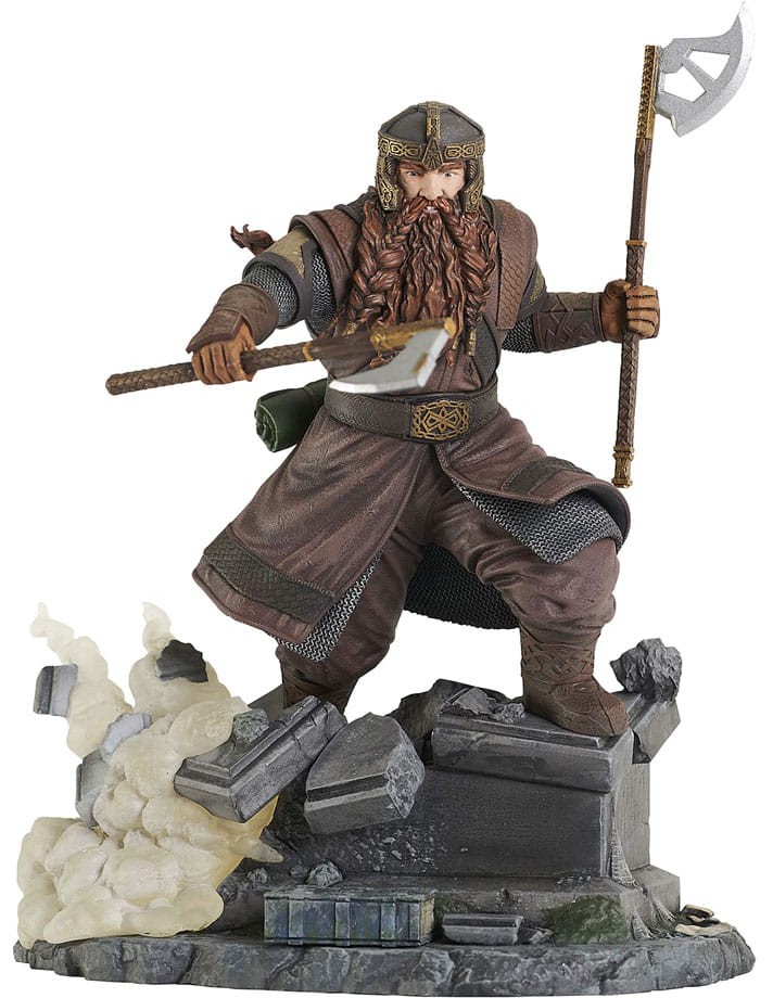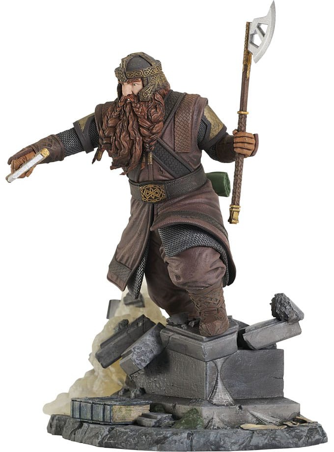 You have his axe! Gimli, son of Gloin, is the next Fellowship member in the Lord of the Rings line of Gallery Dioramas! Standing approximately 8 inches tall, this detailed PVC statue depicts the dwarf swinging his axes while standing atop the crumbling remains of Balin's grave in the mines of Moria. It comes packaged in a full-color window box. Designed by Nelson X. Asencio, sculpted by Jorge Santos Souza!