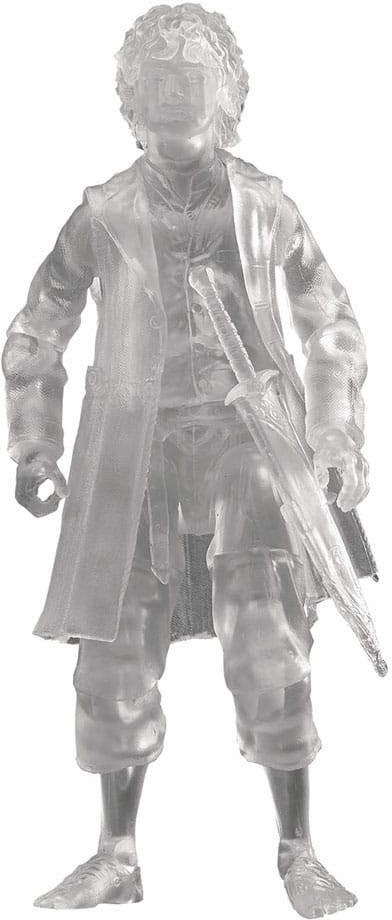 Jag ser dig! Frodo tar på sig ringen och går över till den mörka sidan i den här nya actionfiguren i specialutgåva från DST! Denna ”osynliga” actionfigur är helt gjuten i klar plast och är cirka 13 cm hög och har 16 ledpunkter samt flera tillbehör. Den levereras i en fullfärgad fönsterlåda med en dörr med en femte panel, utformad för att återskapa den minnesvärda scenen från Prancing Pony Inn, där Frodo tog på sig den enda ringen för första gången. Designad av Yuri Timg, skulpterad av Gentle Giant Studios, förpackningsdesign av David Forrest från Kinetic Underground, Inc!