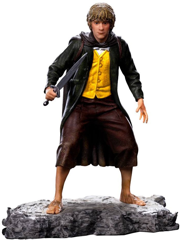 Merry staty baserad på skådespelaren Dominic Monaghans roll i Lord of the Rings filmerna. Ståendes på en Moria bas och beväpnad. Polystone statyn är ca 12 cm hög och i 1/10 skala.