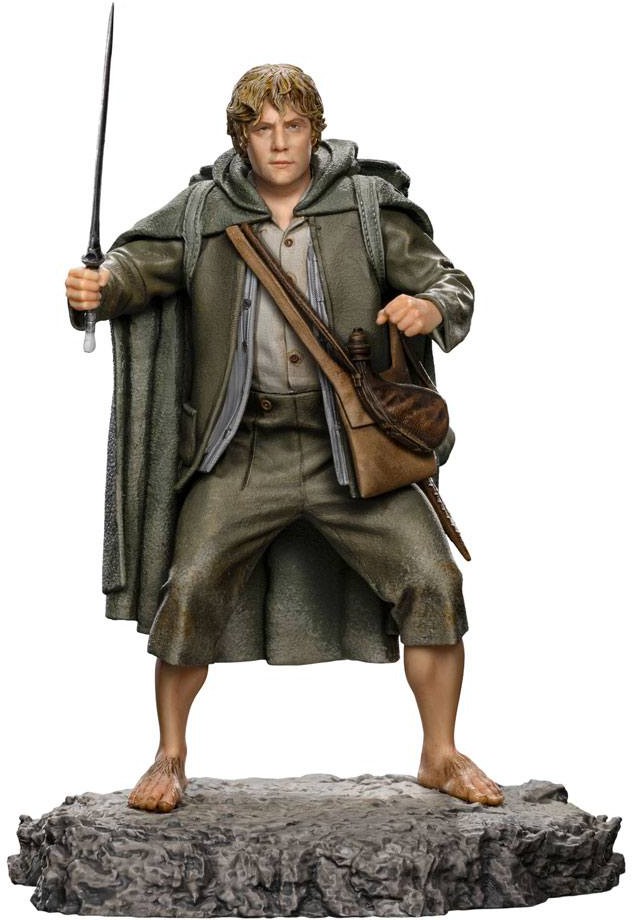 Staty av Sam baserad på skådespelaren Sean Astins roll i Lord of the Rings-filmerna. Sam står på en Moria bas och är beväpnad med ett svärd.