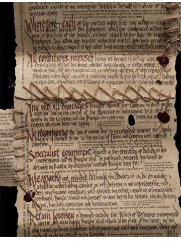 Ett rejält dokument enligt alla standarder, dessa villkor styr ett jobb som Thorin Oakenshield desperat behöver få gjort. Ett äventyrligt företag att döma av kontraktet, och äventyr är något som de flesta hobbitar avstår.