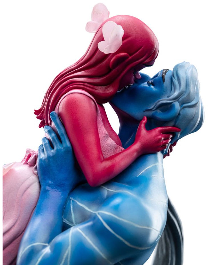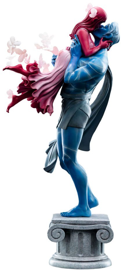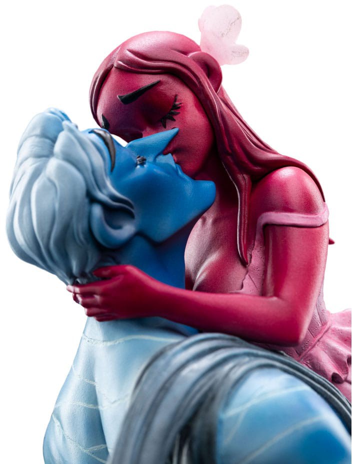 I skymningen i underjorden utkristalliseras ett ögonblick i tiden - en kollision av passion och frigörelse mellan två gudar när alla andra tankar försvinner. Deras ögon möts i en konversation av outtalad längtan och delade rädslor i detta flyktiga ögonblick - den första kyssen, en bekräftelse, men också en fråga om vad som komma skall. Det finns en magi i att berätta historier genom konstnärskap, en kraft att röra och påverka sin publik på sätt som är omöjliga i den vardagliga världen. Denna samlarstaty är ett bevis på denna magi. Våra konstnärer har omsorgsfullt skulpterat varje nyans av detta avgörande ögonblick, från den ömma spänningen i Hades grepp till det eteriska flödet av Persefones hår, som speglar hennes inre oro och blomstrande krafter. De rika, livfulla färgerna, inspirerade av Rachel Smythes ikoniska palett, ger liv åt webtoonens nyckfullhet och intensitet. Varje kurva och kontur är noggrant utformad för att fånga essensen av denna pittoreska första kyss, en blandning av längtan, kärlek och rå sårbarhet. För fans av Lore Olympus är den här statyn mer än ett minnesmärke - den är en påtaglig koppling till den berättelse som har fångat vårt hjärta. Det är en påminnelse om det ögonblick som satte scenen för Hades och Persefones episka kärlekshistoria, en scen som resonerar med alla som någonsin har känt spänningen av oväntad, allt förtärande passion.