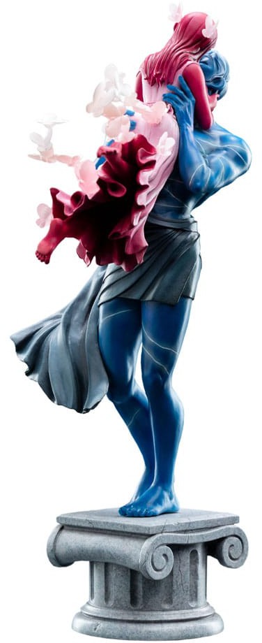 This collectible statue is a testament to that magic. Our artists painstakingly sculpted every nuance of this pivotal moment, from the tender tension in Hades' grip to the ethereal flow of Persephone's hair, mirroring her inner turmoil and blossoming powers. The rich, vibrant colours, inspired by Rachel Smythe's iconic palette, bring the webtoon's whimsy and intensity to life. Each curve and contour, carefully crafted to capture the essence of this picturesque first kiss, a blend of longing, love, and raw vulnerability.