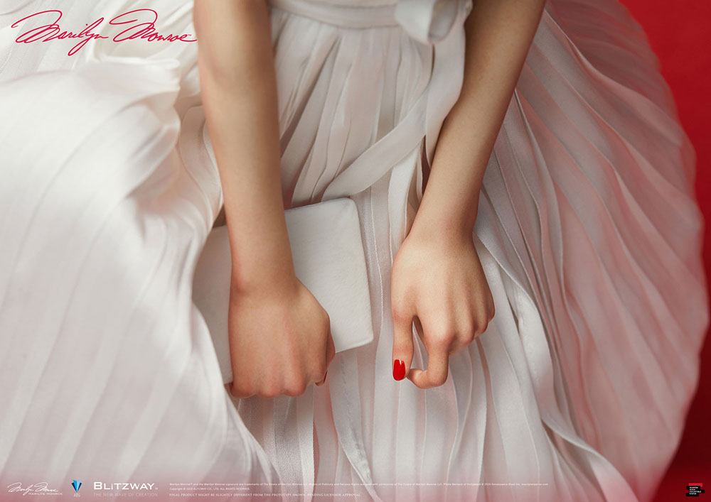 Produced by the delicate touch of our sculptors, Marilyn's beautiful, long legs stretch out to the side, creating a wonderful harmony with the curvy lines of her slightly crouched upper body, and these make the viewers to feel as if they are experiencing the same moment with the blonde goddess.