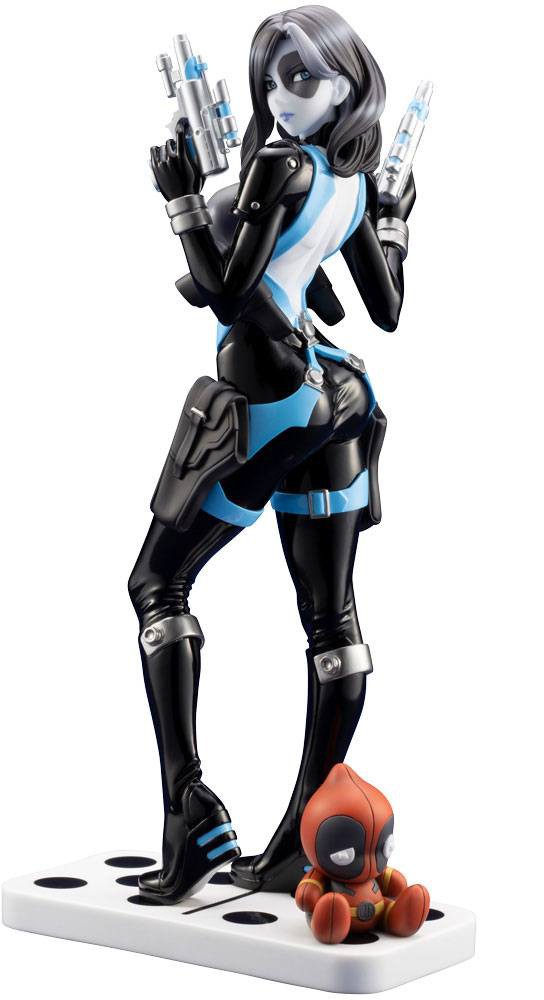 The statue comes with a miniature doll of Domino's X-FORCE teammate Deadpool for you to display in the place of your choosing. Take a chance and add this lucky girl (and her unlucky companion Deadpool) to your collection-- you won't regret it!