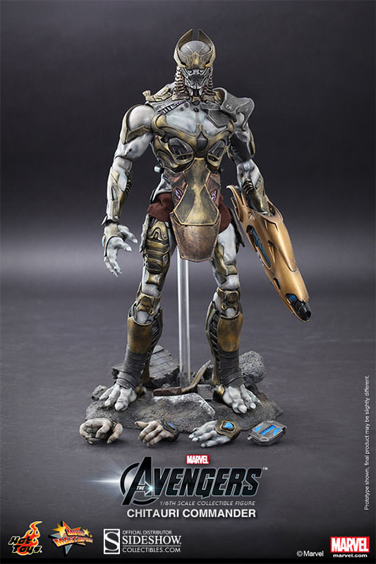 Sideshow Collectibles and Hot Toys are proud to introduce the Chitauri Commander Sixth Scale Figure. The movie-accurate collectible is based on the image of the Chitauri Commander from the hit film The Avengers. Featuring highly-detailed weapons and a city rubble diorama stage base, this Commander will be the perfect addition to Marvel collections.