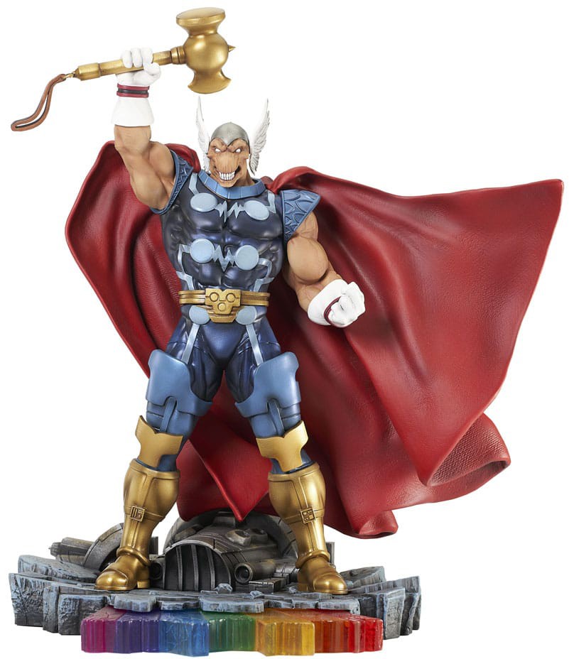 För Asgård! Den utomjordiska krigaren känd som Beta Ray Bill har anlänt, i sin klassiska kostym, som den nyaste Premier Collection-statyn från DST! Denna staty i skala 1/7 är ca 30 cm hög och har detaljerade skulpturer och färgapplikationer ovanpå en skulpterad bas som föreställer de splittrade ruinerna av Rainbow Bridge, Bifrost. Den är begränsad till endast 3000 exemplar och levereras med ett numrerat äkthetsintyg i en färgglad låda. Designad av Yuri Timg, skulpterad av Alejandro Pereira Ezcurra!