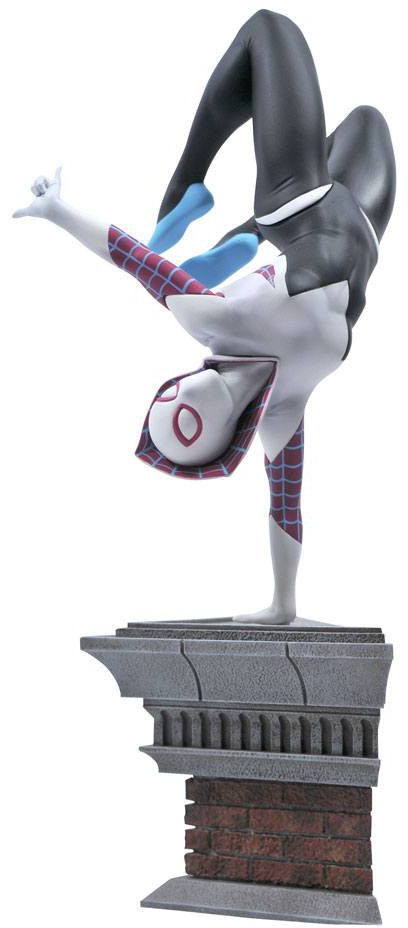 Posting a handstand on a New York City rooftop, the web-slinger formerly known as Spider-Gwen leaps back into the Marvel Gallery line with this all-new sculpt! Measuring approximately 11" tall, this dynamic sculpture is cast in high-quality PVC and features detailed sculpting and paint applications. It comes packaged in a full-color window box. Designed by Joe Allard, sculpted by Jon Matthews.