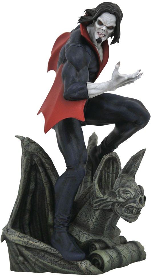 A Diamond Select Toys release! Morbius the Living Vampire has risen! Rising above the crowds atop a menacing gargoyle, pale anti-hero Michael Morbius gazes down at his food supply in this brooding PVC diorama. Measuring approximately 10 inches tall, this sculpture is made of high-quality PVC and comes packaged in a full-color window box.