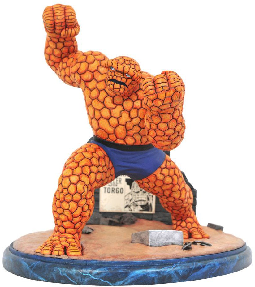 It's clobberin' time! The ever-loving blue-eyed Thing arrives in the Premier Collection as an all-new classically styled statue! The Fantastic Four's rocky curmudgeon strikes a fighting pose in front of a poster announcing an upcoming wrestling match, and clocks in at about 9" tall. Featuring detailed sculpting and paint applications, this statue is limited to only 3,000 pieces and comes packaged in a full-color box with a certificate of authenticity. Designed by Caesar, hand-sculpted by Clayburn Moore!