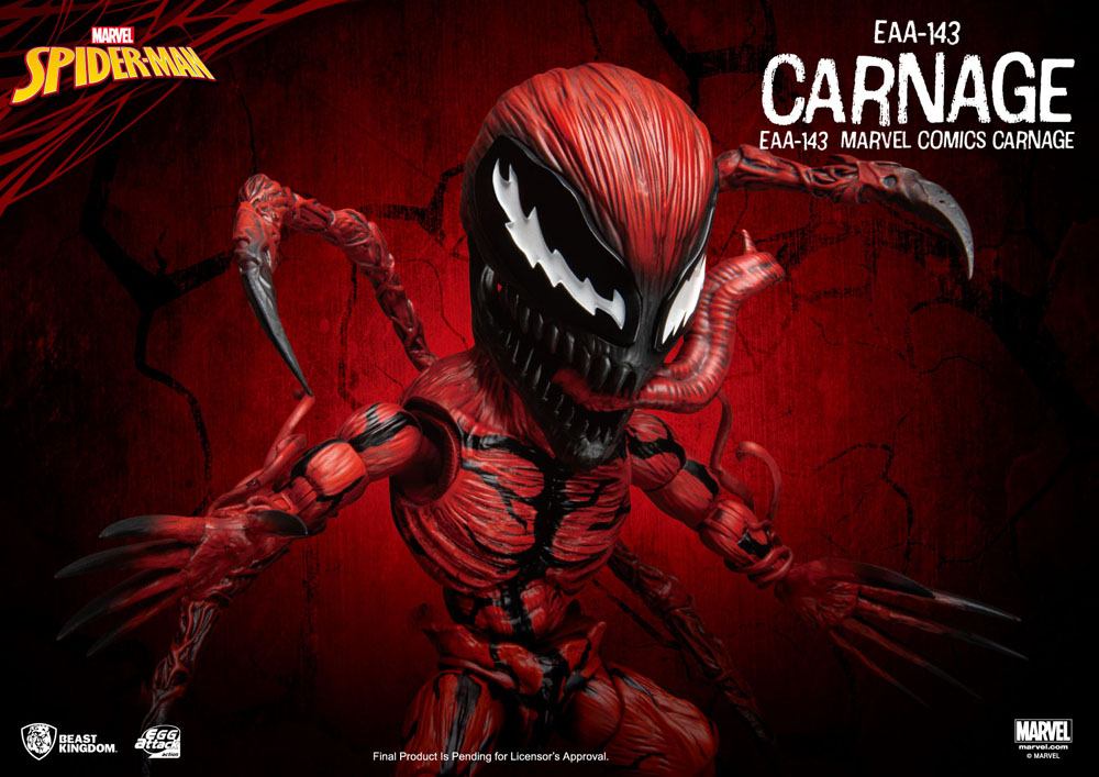 The EAA series of 6-inch, highly articulable action figures under the Beast Kingdom, 'Entertainment Experience Brand' is ready to take on the villain Carnage in all his wild glory. Bringing to life the intricate details of the character with the red and black accents, the figure also takes influence from the original comic designs with a lot of added accessories and effects. Weapons and symbiotic effects allows collectors to pose the figure in any way they choose! To complete the set, fans can choose between a fully maniacal Carnage head sculpt with replaceable eyes, ready for any of his changeable moods, or an equally crazed Cletus Kasady, in the midst of transformation.