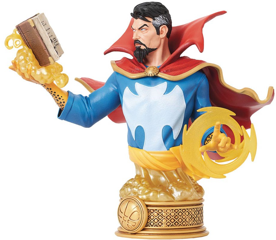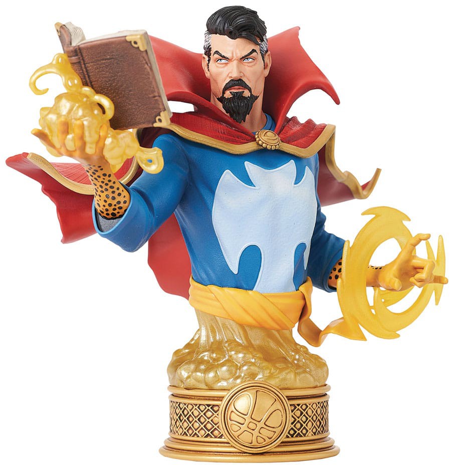 En utgåva från Diamond Select Toys! Av Vishanti! Doctor Strange kastar en förtrollning i den nyaste 1/7 skala mini-bysten i Marvel Comics-linjen från DST! Med Vishantis bok svävande över ena handen och genererande magiska blixtar med den andra, mäter Stephen Strange cirka 13 cm hög ovanpå en detaljerad piedestalbas. Den är begränsad till endast 3000 exemplar och levereras med ett numrerat äkthetscertifikat i en färgglad låda. Designad av Nelson X. Asencio, skulpterad av Juan Pitluk!