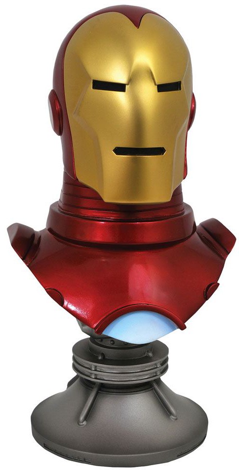 Tony Stark is a legend in his own time, and now he's a Legend in 3D! Iron Man joins the half-scale line of resin busts with this shiny portrait of the Avenger, measuring approximately 25 cm tall atop a technological base.