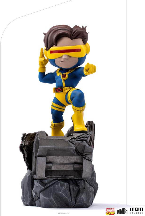 "Cyclops - X -Men - MiniCo - Iron Studios" har hjälten som visar all sin styrka, med sin högra hand redo att höja sitt visir och avfyra energistrålen, och hans vänstra hand pekar i riktning mot deras nästa uppdrag.