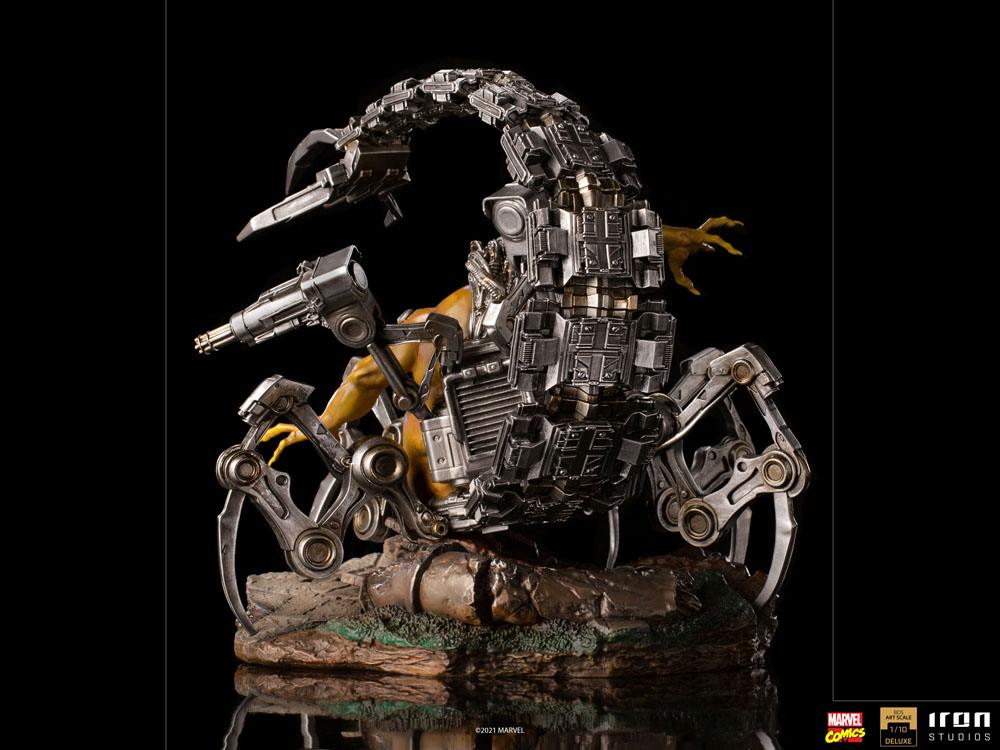 As if he's come straight out of a nightmare, a burly, misshapen, yellow-skinned being moves like an arachnid. Moved by mechanical paws that come out of a motorized platform to transport his obese body, and supported by a metallic tail, in place of his spine, just like a scorpion, as the tip of his tail releases deadly resources, with claws and particle beam weapons. A fearsome interdimensional sorcerer, master of manipulation and machinist of his universe, he advances, atop a base that resembles the gardens of Mansion X, along with other mutant super-villains, in a diorama setting, alongside Magneto and Robots Sentinels versus the X-Men. For fans and collectors, from the dimension that adds his name, Iron Studios proudly presents its statue "Mojo - X-Men - BDS Art Scale 1/10".