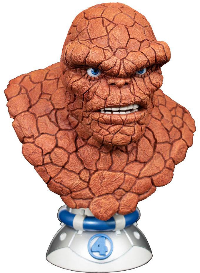 It's clobberin' time! The Fantastic Four's resident rockpile and heart of the team Ben Grimm is now a Legend in 30! Standing approximately 10" tall, this rocky 1/2 scale bust features detailed sculpting and paint applications, and is limited to only 1000 pieces. It comes packaged in a full-color box with a hand-numbered certificate of authenticity. Designed by Joe Allard, sculpted by Rocco Tartamella!
