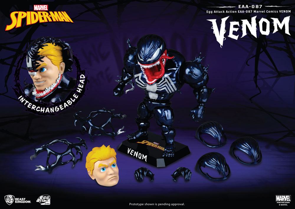 Beast Kingdom Taiwan is excited to recreate 6-inches of menacing power. Venom's dark charms are a perfect 'combination' for the famous Egg Attack Action brand of figurines. With a faithful recreation of Venom's bulging body, oversized mouth and tongue, as well as his strong fangs, replacement expressions and a movable chin, collectors are sure to turn heads anywhere it is placed. Not forgetting that the set also includes two head sculpts, as well as four different sizes of symbiotic special effects goo! One of the most playable and collectible Venom figurines on the market, so make sure this figure is added to your collection this summer!