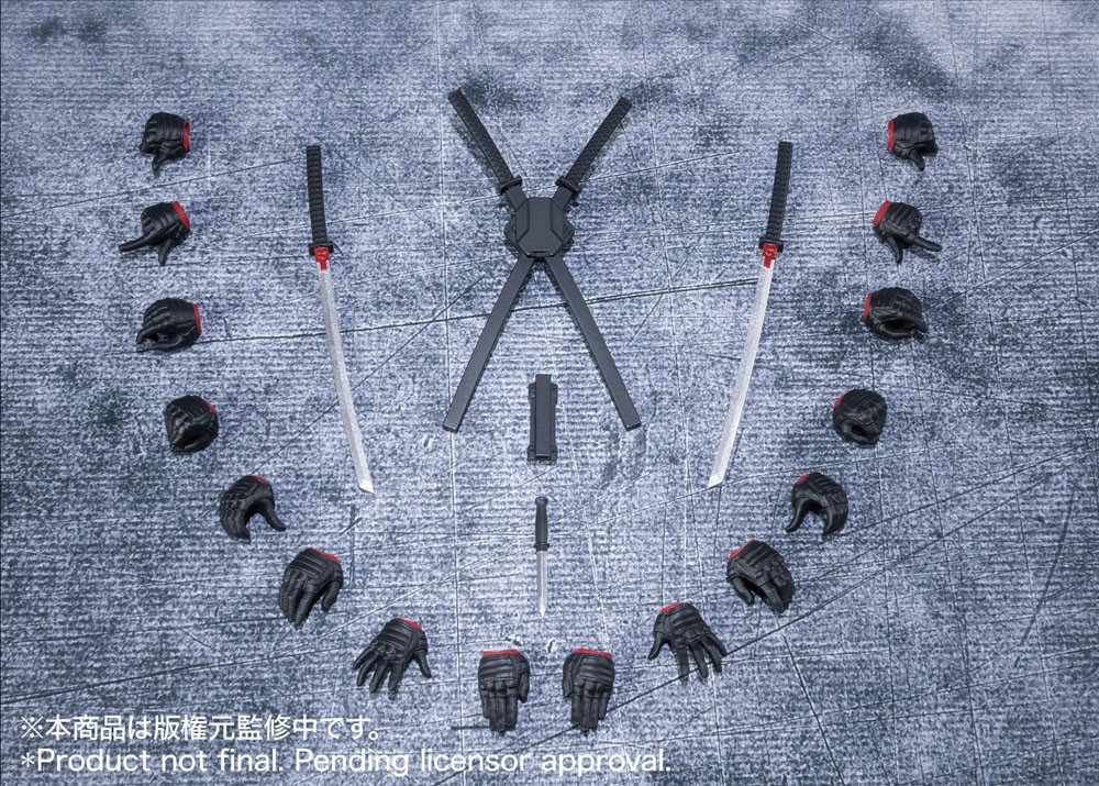 Set Contents: Main Body, Three pairs of optional eyes, Eight pairs of optional hands, Two swords, Sword (stowed), Knife, Knife scabbard (empty), Eye replacement tool