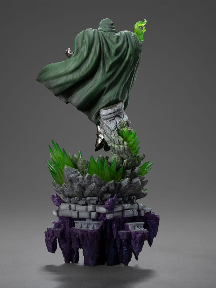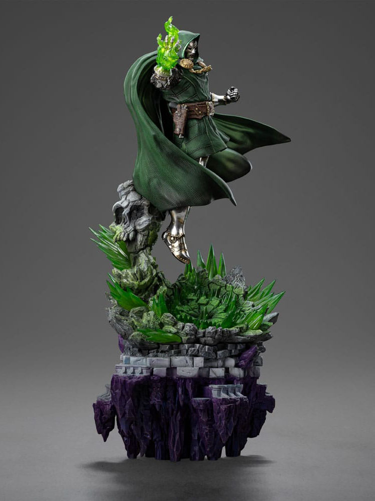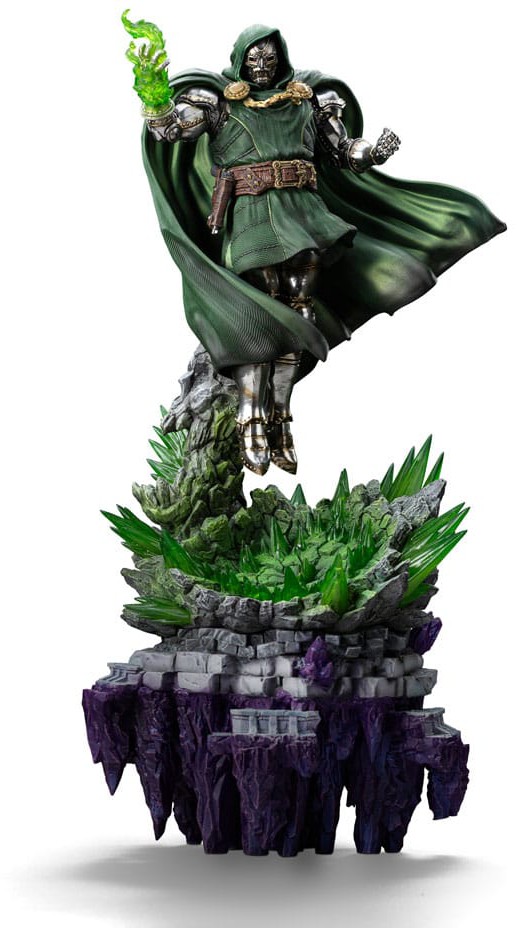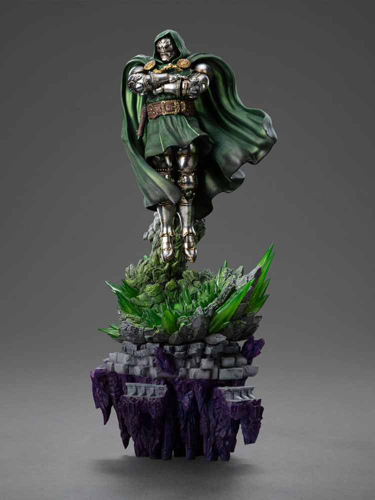 Med oöverträffad storhet reser sig Latverias härskare på en tron av spillror och förkroppsligar sin absoluta makt och dominans. Iklädd sin ikoniska metallrustning och böljande cape överblickar Doctor Doom sitt kungarike och sina fiender med en kall, beräknande blick, redo att krossa alla hot mot hans styre.