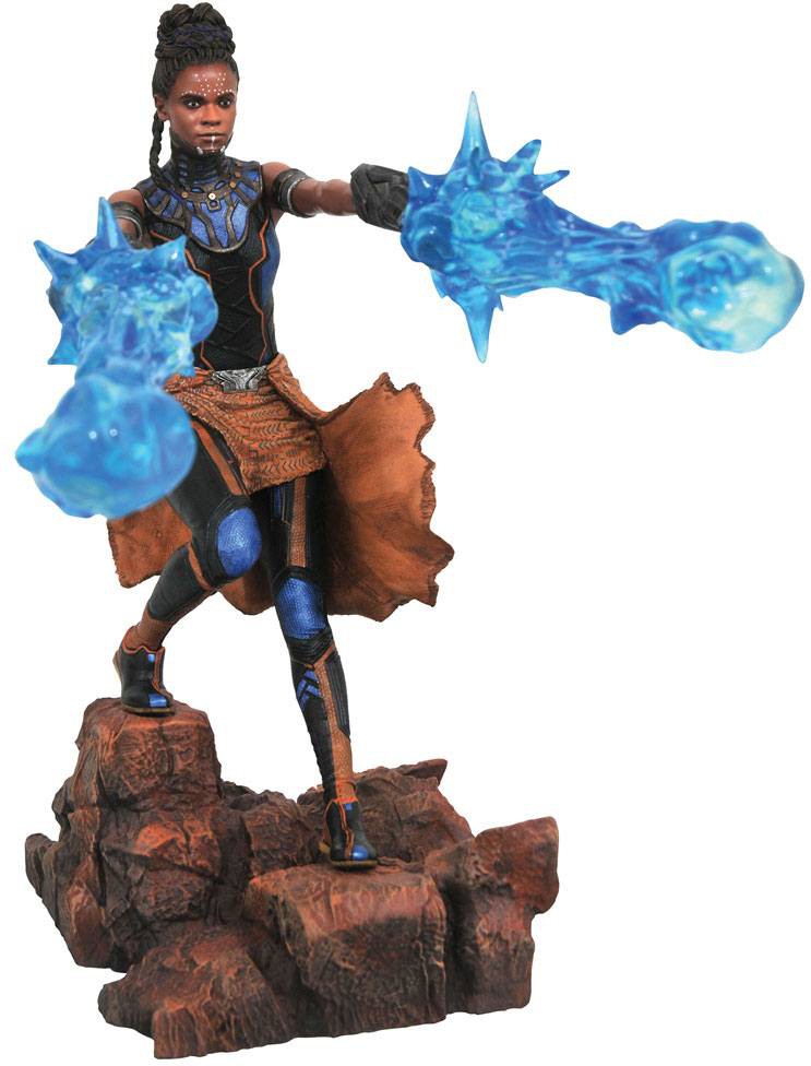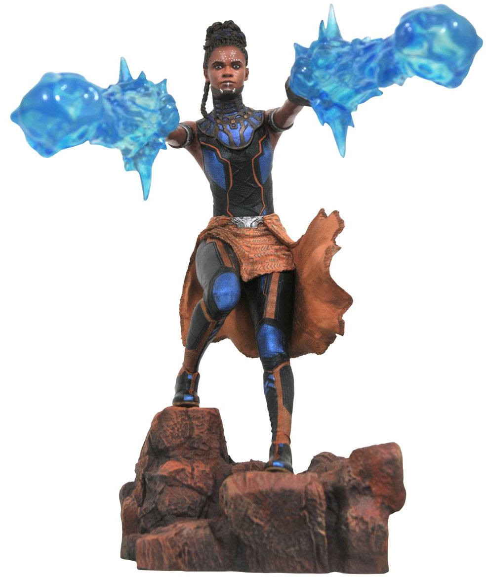 Sonic boom! The most brilliant mind in Wakanda is T'Challa's sister Shuri, and she not only designs amazing weapons, she wields them! In this PVC Diorama, Shuri takes aim with her twin Vibranium gauntlets, firing blasts of sonic energy. Measuring approximately 9 inches tall, this statue features detailed sculpting by Rocco Tartamella based on a design by Nelson Asencio, and includes the character's real movie likeness. Shuri comes packaged in a full-color window box.
