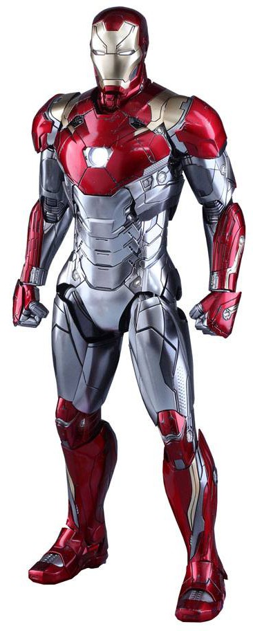 Metallic red, gold, silver, and dark silver colored painting on the sleek and streamlined Mark XLVII armor design