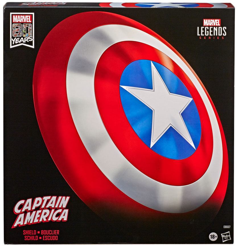 - Celebrate 80 years of exciting Marvel comics and entertainment with the 1:1 full-scale Captain America roleplay shield with detailed sculpting and premium finish that looks great in any Marvel fan collection