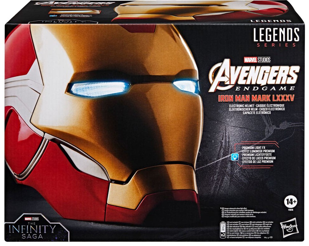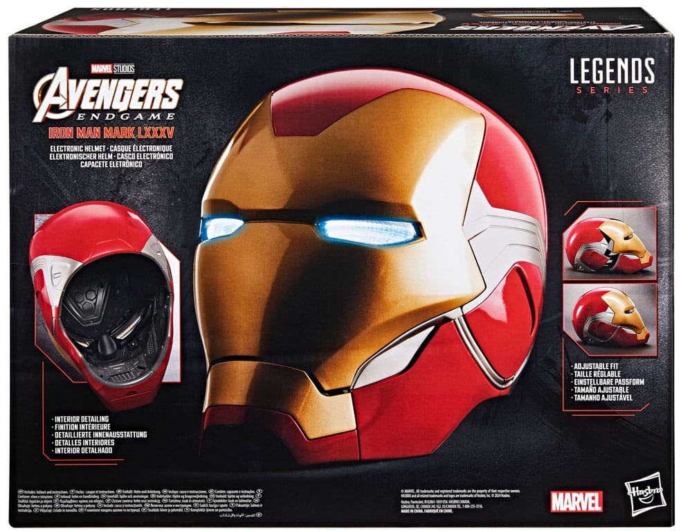 Marvel Legends presenterar stolt denna högkvalitativa reproduktion av Iron Mans Mark 85-hjälm som den ser ut i den episka avslutningen på Infinity Saga. Med filmnoggrann skulptur och detaljering är detta nästa viktiga Marvel Legends Roleplay-objekt för din Marvel-utrustningssamling.