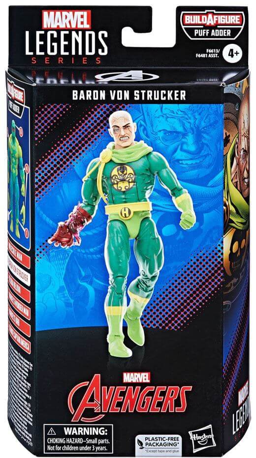 This collectible 6-inch-scale Marvel Legends Classic Comic figure is detailed to look like the Baron Von Strucker character with his Satan Claw gauntlet from Marvel Comics, featuring premium detail and multiple points of articulation. It comes with 2 power effect accessories; plus a Build-A-Figure piece.