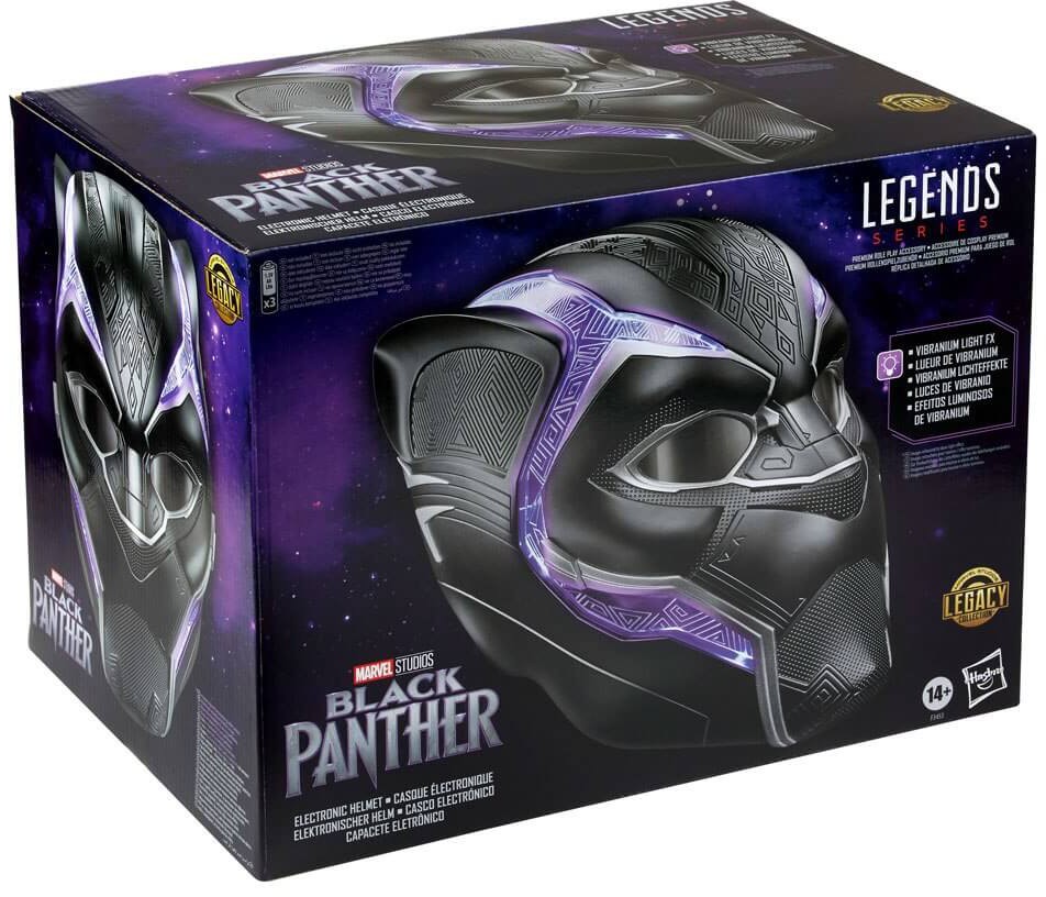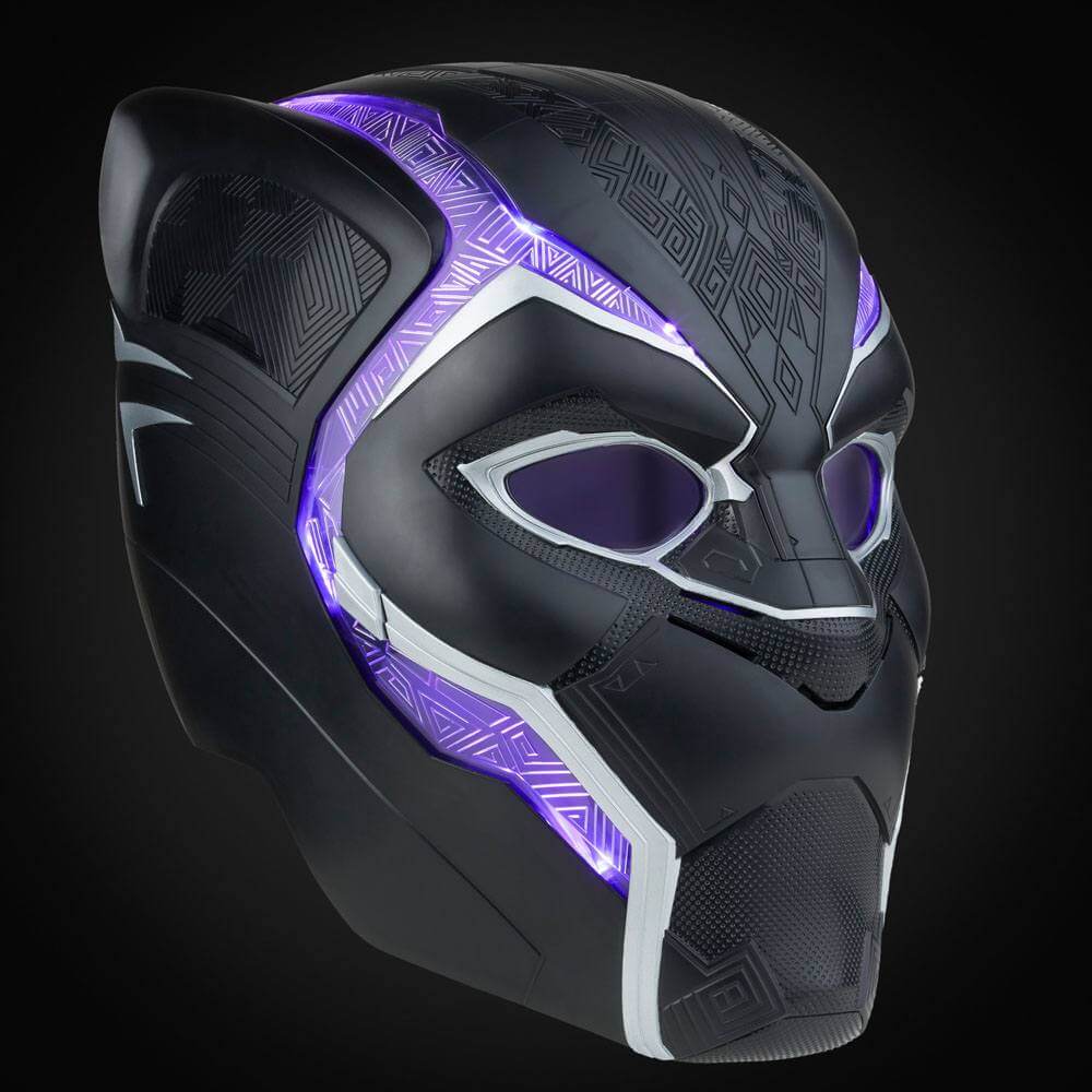The Black Panther is the ordained ruler and protector of Wakanda, the most technologically advanced nation on earth, the armour and helmet serving as symbols of office as much as protective gear. Marvel Legends proudly presents this 1:1 scale reproduction of Black Panther's helmet as it appears in Marvel Studios' Black Panther! With film-accurate sculpting and detailing across the helmet, this is the next essential Marvel Legends roleplay item for your collection! Trigger the flip-up/flip-down lenses and film-inspired light FX and imagine Black Panther springing into action!