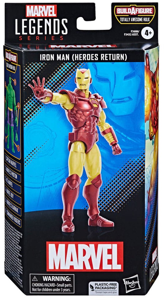 Den här samlarfiguren från Marvel Legends är detaljerad för att se ut som Iron Man (Heroes Return) från Marvel Comics, med förstklassiga detaljer och flera ledpunkter.