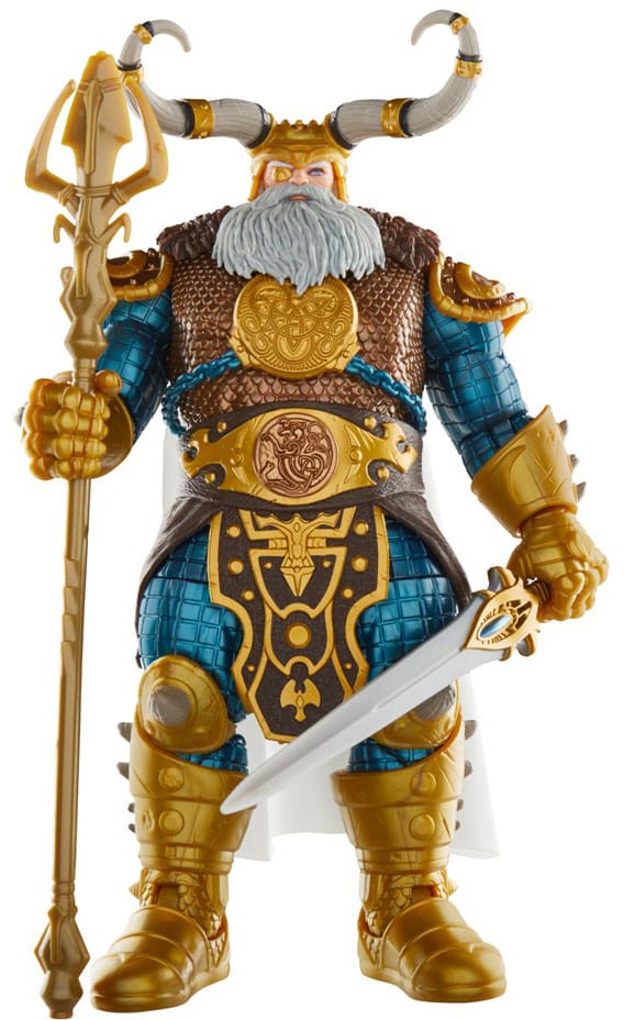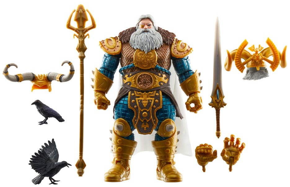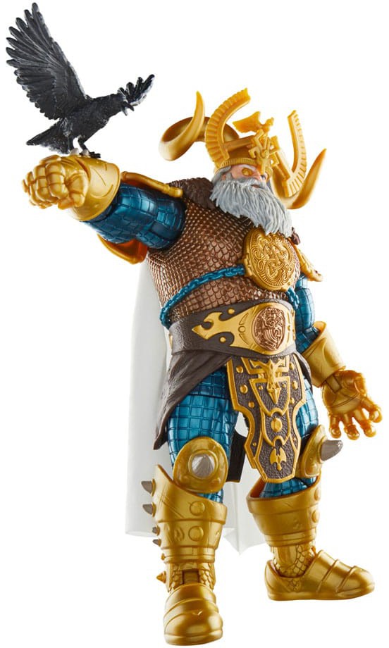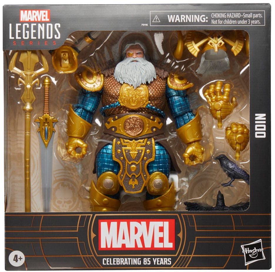 Bring the excitement and wonder of the Marvel Universe to your collection with Hasbro Marvel Legends Odin figure! In celebration of Marvel's 85th anniversary, this collectible figure is detailed to look like the character from Marvel's Thor comic books. 6-inch scale Marvel figures are fully articulated with poseable head, arms, and legs. Marvel action figure set comes with 8 accessories, including alternate hands, 2 helmets, 2 ravens, staff and sword. Collectible action figure features a soft goods cape and stands at 8.2 inches tall. Hasbro Marvel action figures' 6 inch scale make them great for posing and displaying in fans' collections. Reimagine Marvel comics-inspired scenes on your shelf with Marvel Legends action figures.