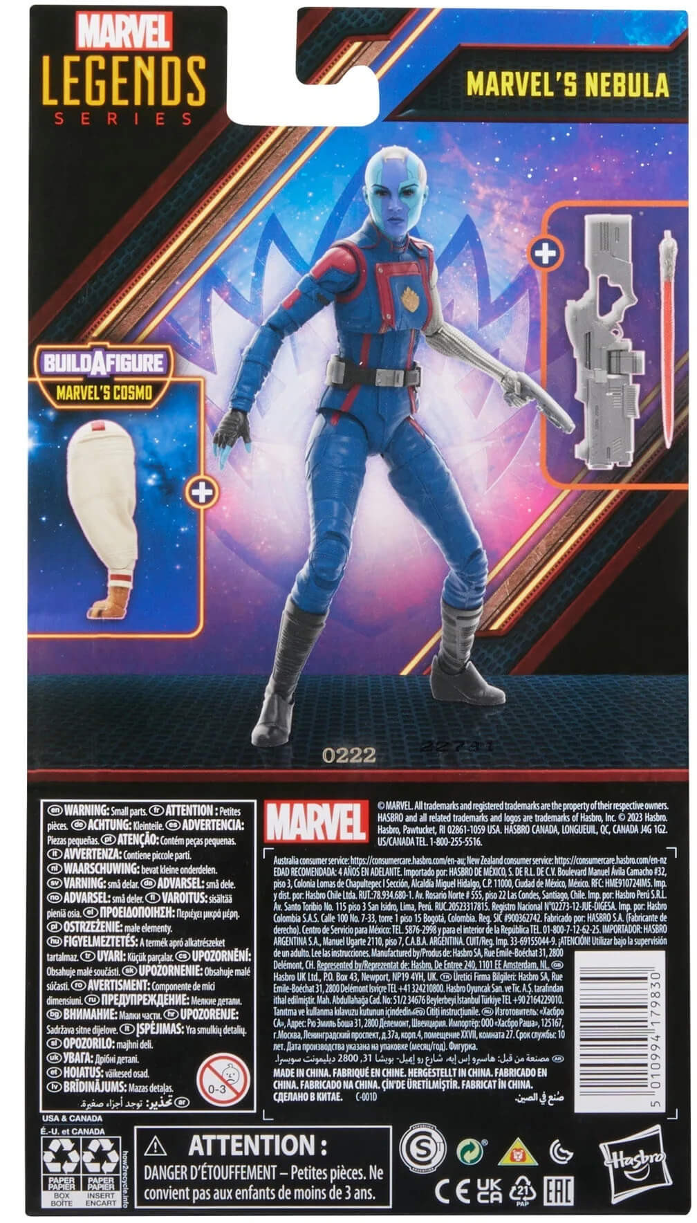 This collectible 6-inch-scale Marvel Legends figure is detailed to look like the Marvel’s Nebula character from Marvel Studios’ Guardians of the Galaxy Vol. 3, featuring premium detail, multiple points of articulation, and 4 movie-inspired accessories, including two blaster accessories.