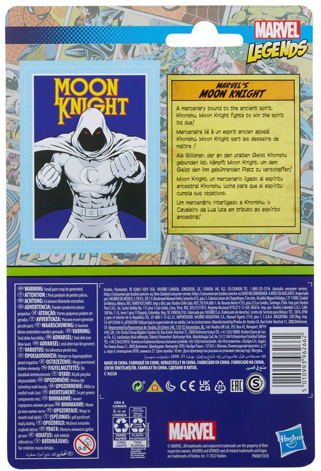 RETRO-INSPIRED PACKAGING: Fans, collectors, and kids alike can enjoy this 3.75-inch-scale classic Retro 375 Collection Marvel's Moon Knight figure, inspired by the character from the Marvel comics