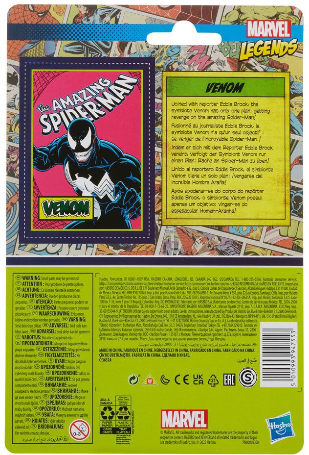 RETRO-INSPIRED PACKAGING: Fans, collectors, and kids alike can enjoy this 3.75-inch-scale classic Retro 375 Collection Venom figure, inspired by the character from the Marvel comics.