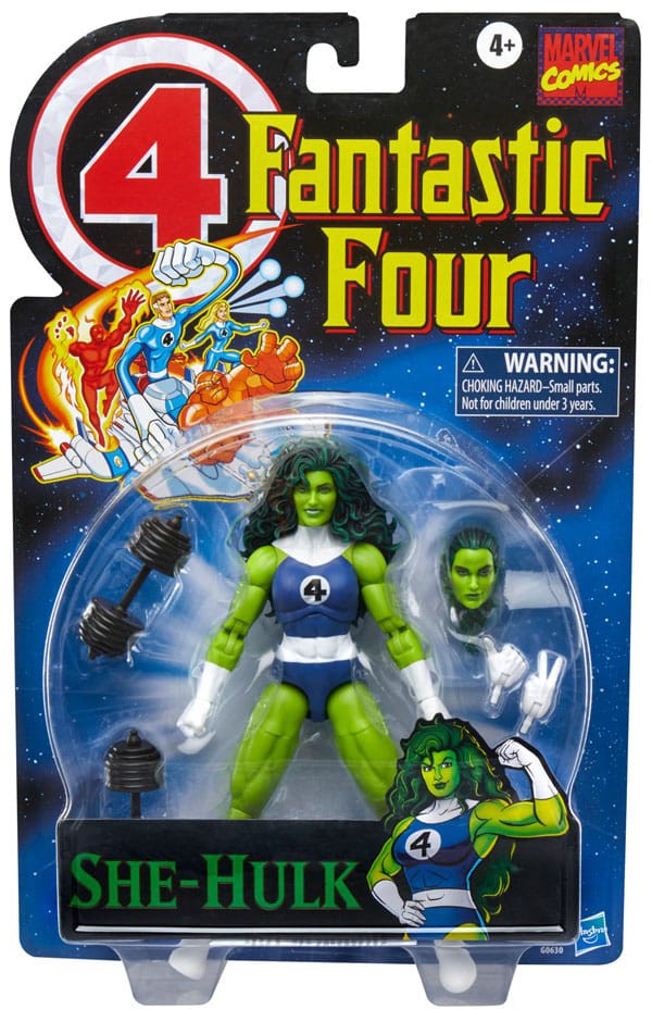 Bring the excitement and wonder of the Marvel Universe to your collection with Hasbro Marvel Legends She-Hulk figure! Detailed to look like the character's appearance in Marvel comics this collectible 6-inch scale Fantastic Four figure is fully articulated with premium design and poseable head, arms, and legs. This Marvel action figure set comes with 7 accessories, including 4 alternate hands, 2 dumbbells, and alternate head. Hasbro Marvel action figures' 6 inch scale make them great for posing and displaying in fans' collections. Reimagine comics-inspired scenes from classic Fantastic Four comics on your shelf with Marvel Legends action figures and Marvel collectibles.