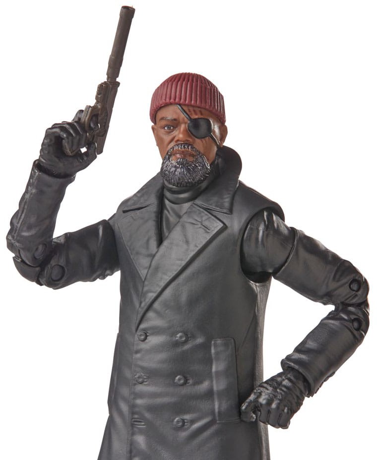 Den här Marvel Legends-actionfiguren är detaljerad för att se ut som Nick Fury från Marvel Studios Secret Invasion, med förstklassiga detaljer och flera ledpunkter.