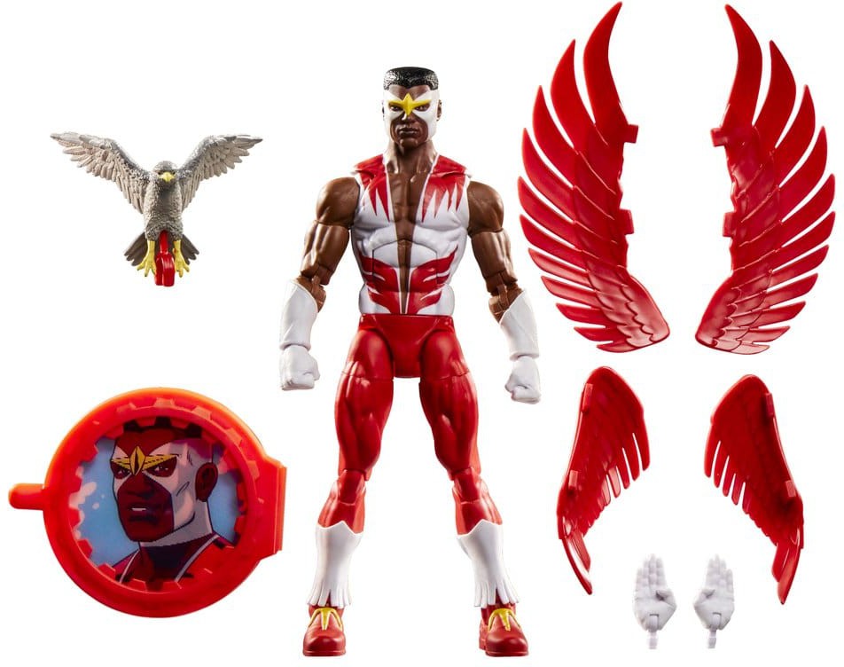 Denna Hasbro Marvel Legends-actionfigur föreställer Marvel’s Falcon från Marvel’s Secret Wars och Captain America-serietidningarna, med en design som troget fångar hans klassiska serieutseende.