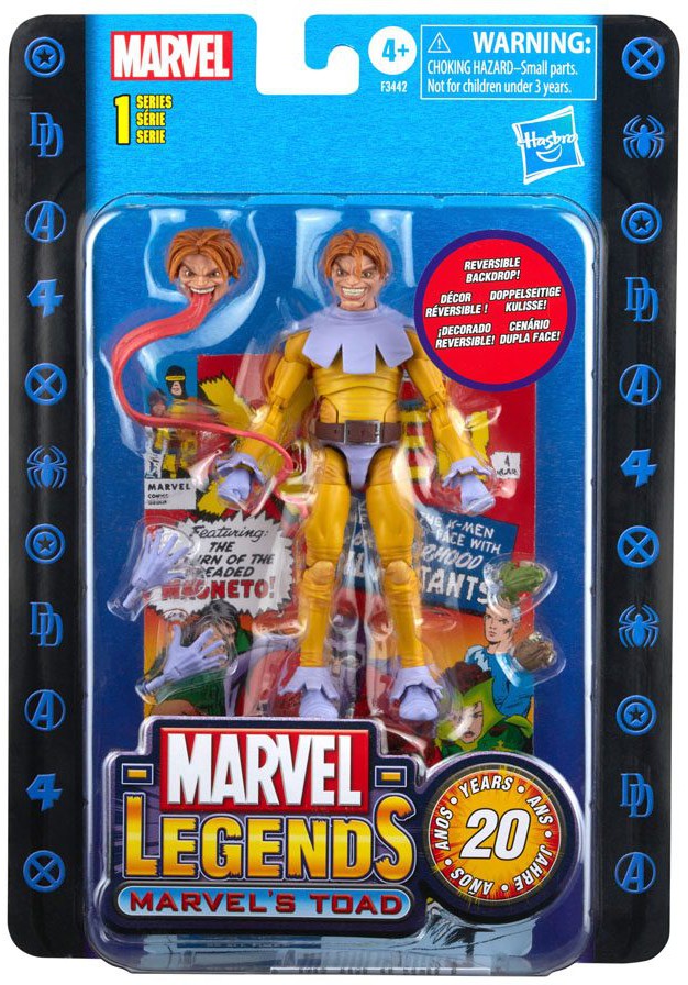 PREMIUM ACCESSORIES AND BACKDROP: The Series 1 Marvel's Toad figure comes with 5 accessories, including alternate head with his signature mutant tongue, and a comics-inspired reversible backdrop and stand for display!
