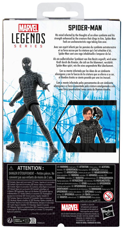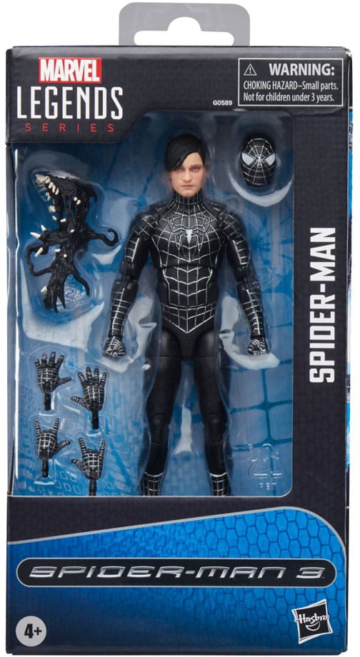Bring the excitement and wonder of the Marvel Universe to your collection with Hasbro Marvel Legends Spider-Man action figure! This collectible 6-inch scale Marvel figure is detailed to look like the character's appearance in the Spider-Man 3 film. Spider-Man figure is fully articulated with premium design and poseable head, arms, and legs, featuring iconic black Spidey suit look inspired by the movie. Marvel action figure set comes with 6 accessories, including set of alternate hands and unmasked Peter Parker alternate head. Hasbro Marvel action figures' 6 inch scale make them great for displaying in fans' collections. Reimagine movie-inspired scenes on your shelf with Marvel Legends action figures and Marvel collectibles.