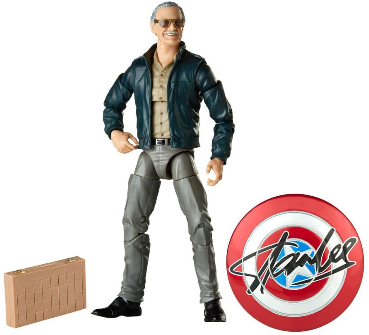 Inspired by Stan Lee's cameo as a skeptical chess player in Marvel's The Avengers, this Marvel Legends Stan Lee 6-Inch Action Figure includes a briefcast and Captain America shield with a replica of Stan's autograph.