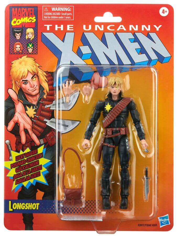This Marvel Legends Classic Longshot figure comes in retro-style packaging to recreate the classic Marvel Legends releases!