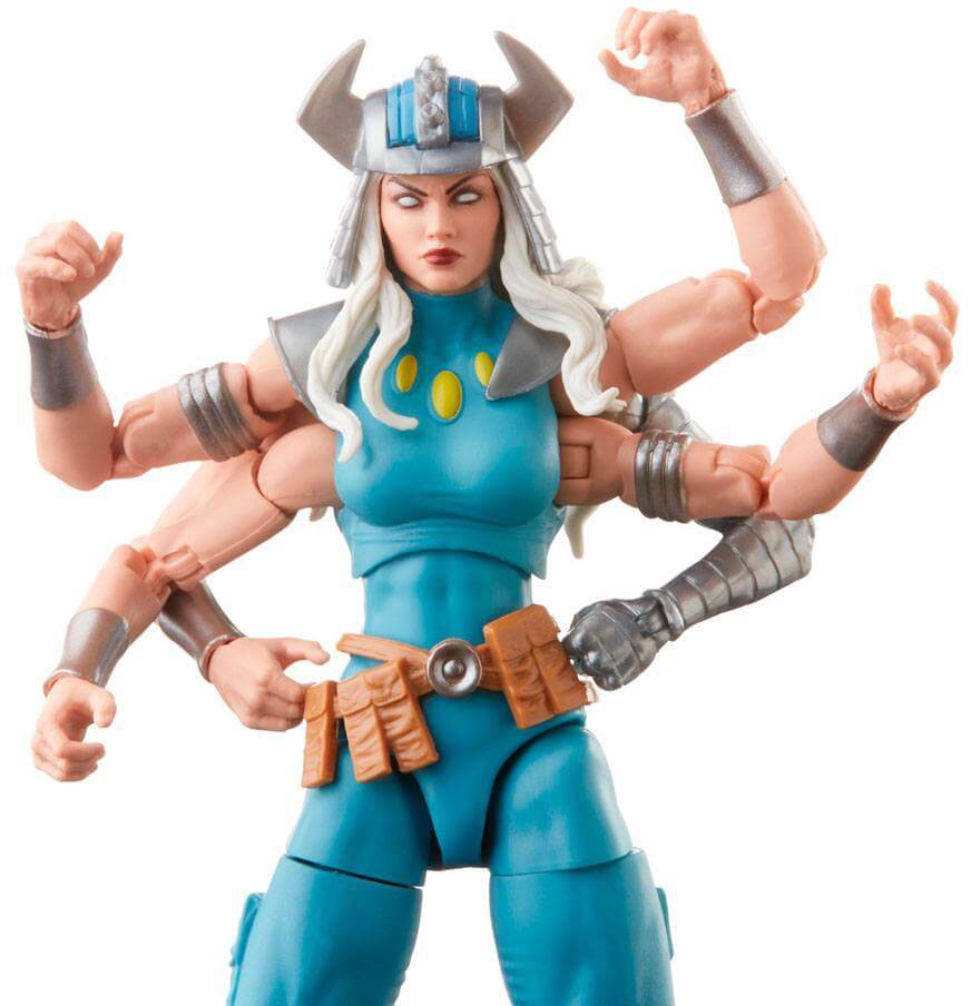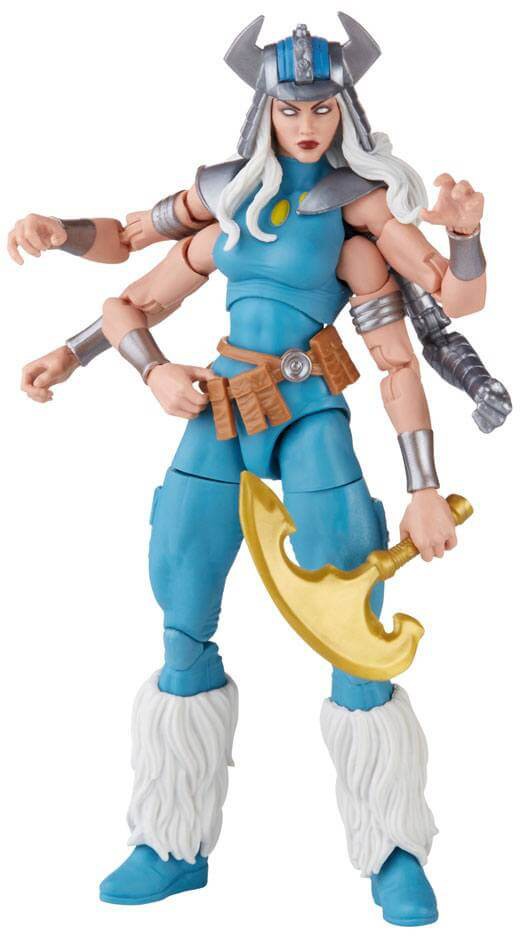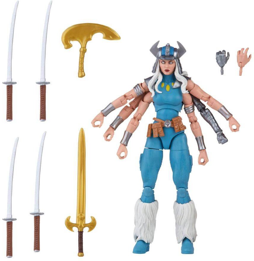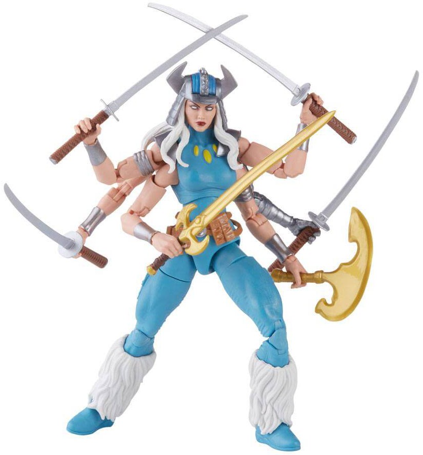 The Marvel Legends Series Marvel's Spiral figure is highly posable for display and play and comes with twinned sword and axe accessories that the six-armed figure can brandish all at once!