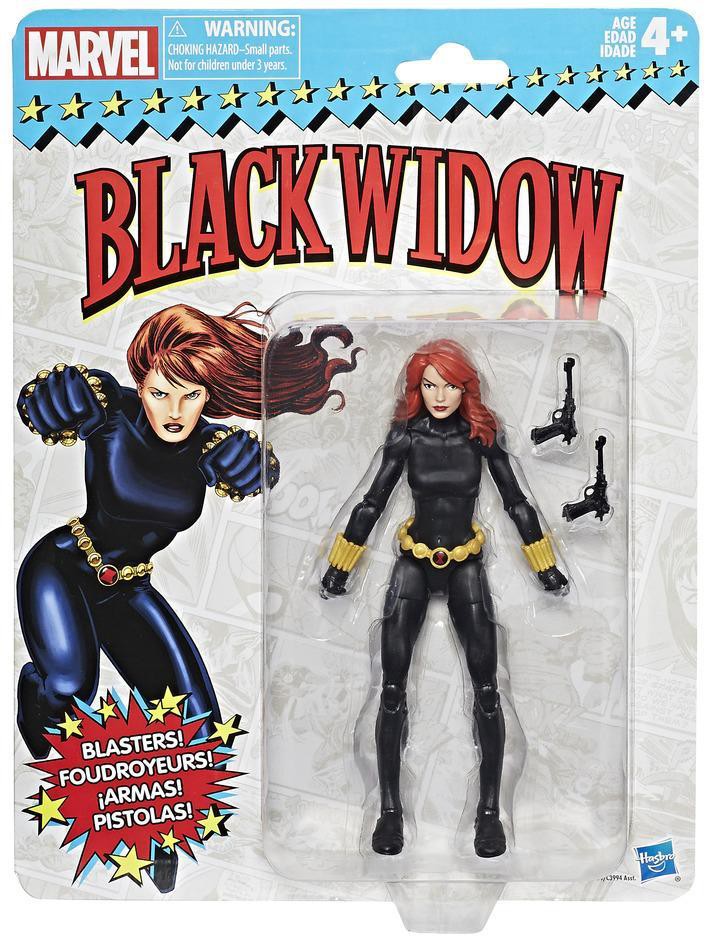 Imagine the elite agent bringing expert combat skills to the battle for justice with this 6-inch scale Black Widow vintage figure, including a blaster accessory! A tribute to the history of Marvel Super Heroes, the Marvel Retro 6-inch Collection features core Marvel characters with retro packaging and design. Each figure includes multiple points of articulation, classic-inspired details, and 2 character-specific accessories. Collectors and kids alike can expand their Marvel collection with 6-inch scale figures from the Marvel Retro Collection. Additional figures each sold separately.