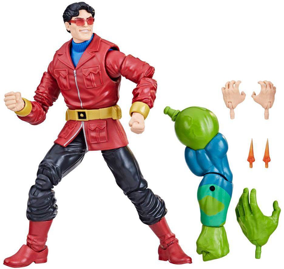This collectible 6-inch-scale Marvel Legends Classic Comic figure is detailed to look like the Marvel's Wonder Man character clad in his red jacket costume with transparent red sunglasses from Avengers comics, featuring premium detail and multiple points of articulation. It comes with 4 accessories, including alternate hands and belt-jet thrust accessories that plug into the figure's belt; plus 2 Build-A-Figure pieces.