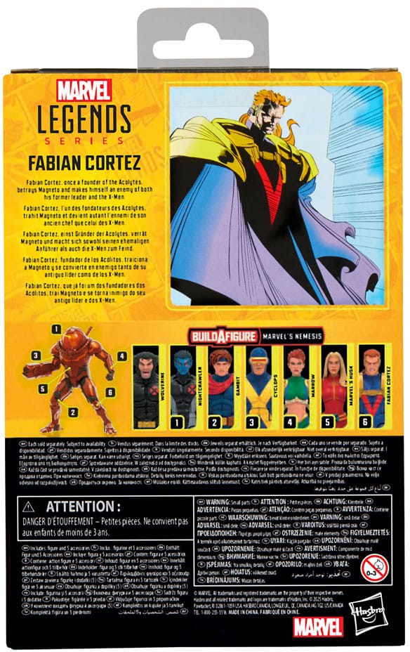 Bring the excitement and wonder of the Marvel Universe to your collection with Hasbro Marvel Legends Fabian Cortez X-Men figure! This collectible 6-inch scale Marvel figure is detailed to look like the character from Marvel's X-Men comics. Fabian Cortez action figure is fully articulated with premium design and poseable head, arms, and legs. Marvel action figure set comes with 4 accessories and 1 Marvel's Nemesis Build-A-Figure piece. Complete the additional figure with Marvel Legends X-Men action figures Nightcrawler, Gambit, Cyclops, Marrow, and Marvel's Husk. (Each sold separately. Subject to availability.) Hasbro Marvel action figures' 6 inch scale make them great for posing and displaying in fans' collections. Reimagine X-Men comics-inspired scenes on your shelf with Marvel Legends action figures and Marvel collectibles.