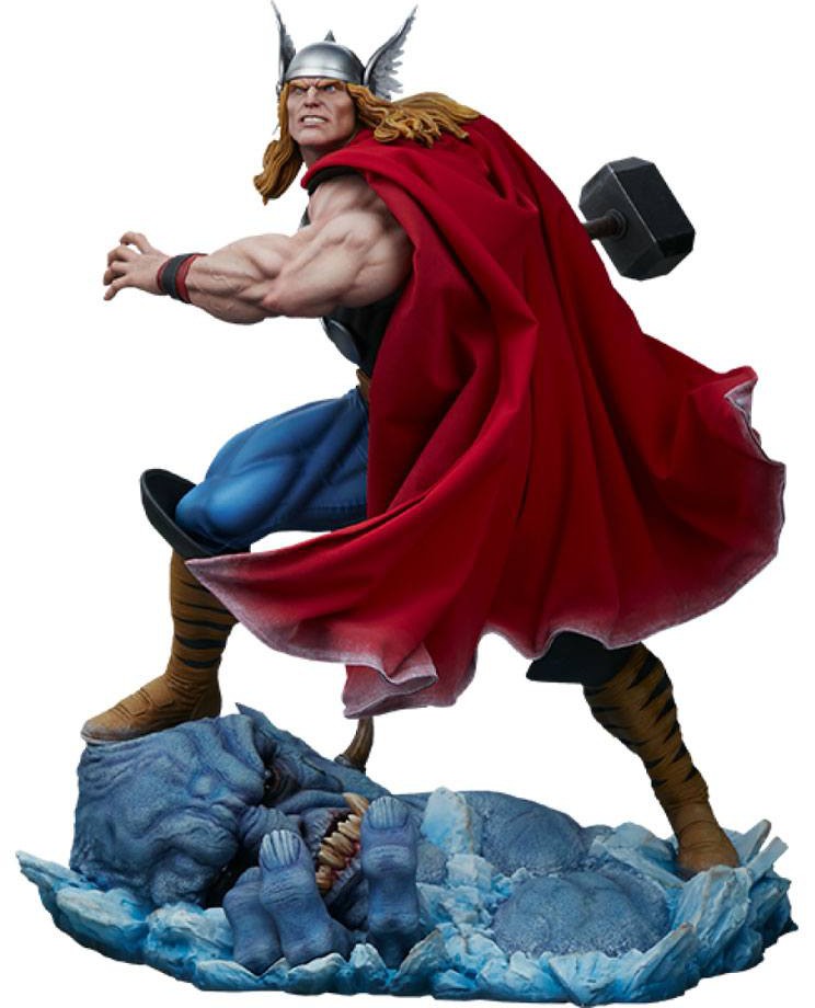Sideshow presenterar Thor Premium Format Figure. Statyn är ca 56 cm hög i 1/4 skala. Thor står på en besegrad Frost Giant. Statyn är gjord i polyresin men har delar i PVC och tyg. Inspirerad av karaktärens tidigaste utseenden i Marvel Comics.