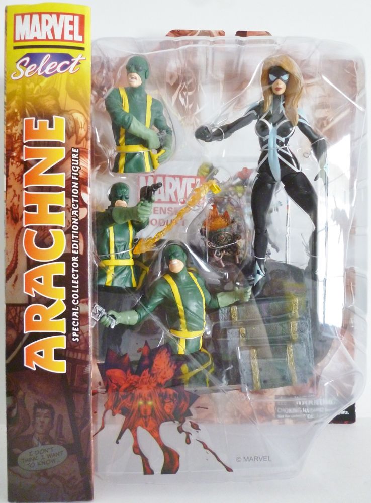 Diamond Select fortsätter släppa actionfigurer i deras Marvel Select-serie. Här kommer Arachne på en snygg bas med tre stycken Hydra agents.