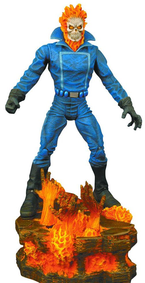 It´s a blast (of Hellfire) from the past! Originally released in 2007, this detailed 7-inch figure of Johnny Blaze, the original Ghost Rider, is going back into production for the first time since its original release! Finally, fans who missed out will have a chance to own this classic item! Figure comes with detailed underworld base in display-ready Select packaging, with shelf reference panel.