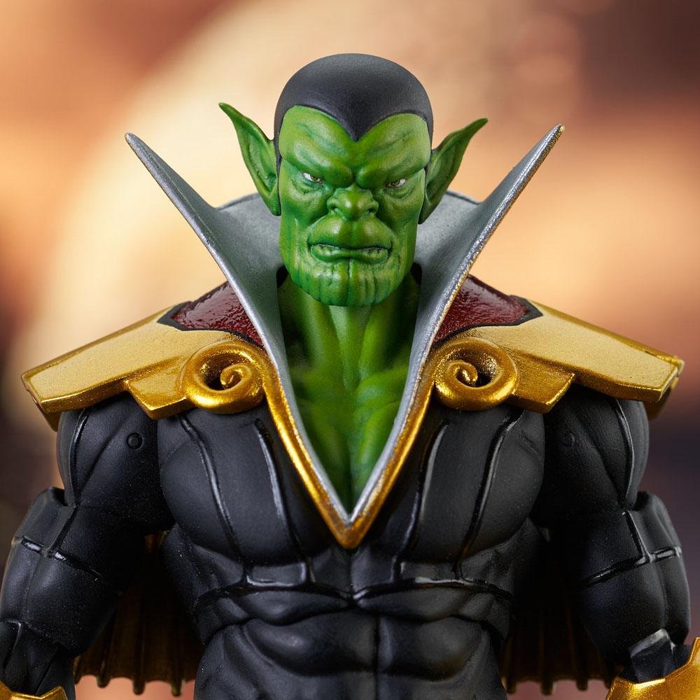 Illuminati, se upp! Skrullerna har infiltrerat era led, och denna Super Skrull har samma krafter som alla Illuminater tillsammans! Den här grönhyade Skrullen, som aldrig tidigare gjorts som leksak, kommer klädd i en Illuminati-inspirerad outfit och innehåller ett utbytbart maskerat huvud, samt utbytbara händer och en förödande Black Bolt sonisk attackdel! Den här samlarfiguren är cirka 18 cm hög och har 16 ledpunkter och kommer i Select-förpackning med konstverk på sidopanelen för hyllvisning. Designad av Eamon O'Donoghue, skulpterad av Gentle Giant Studios!